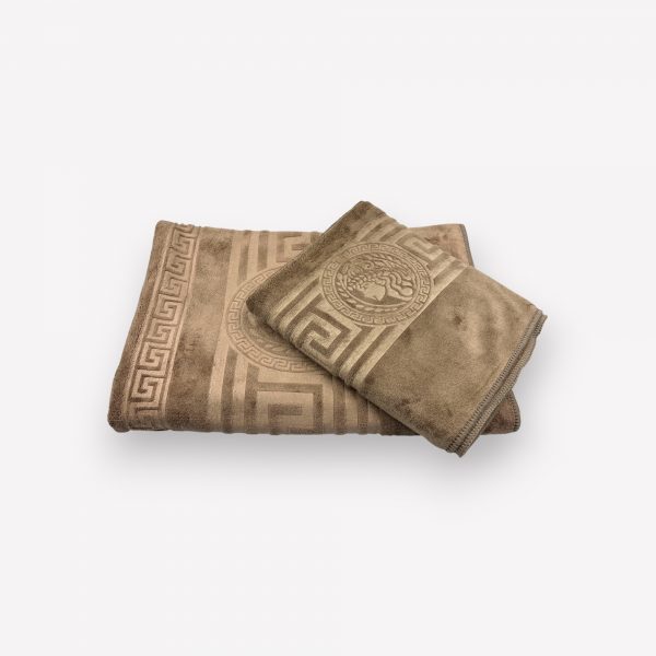 Luks klases vannas dvielis ar Versace simboliku Bēšs 50×90 cm (vidēja lieluma)