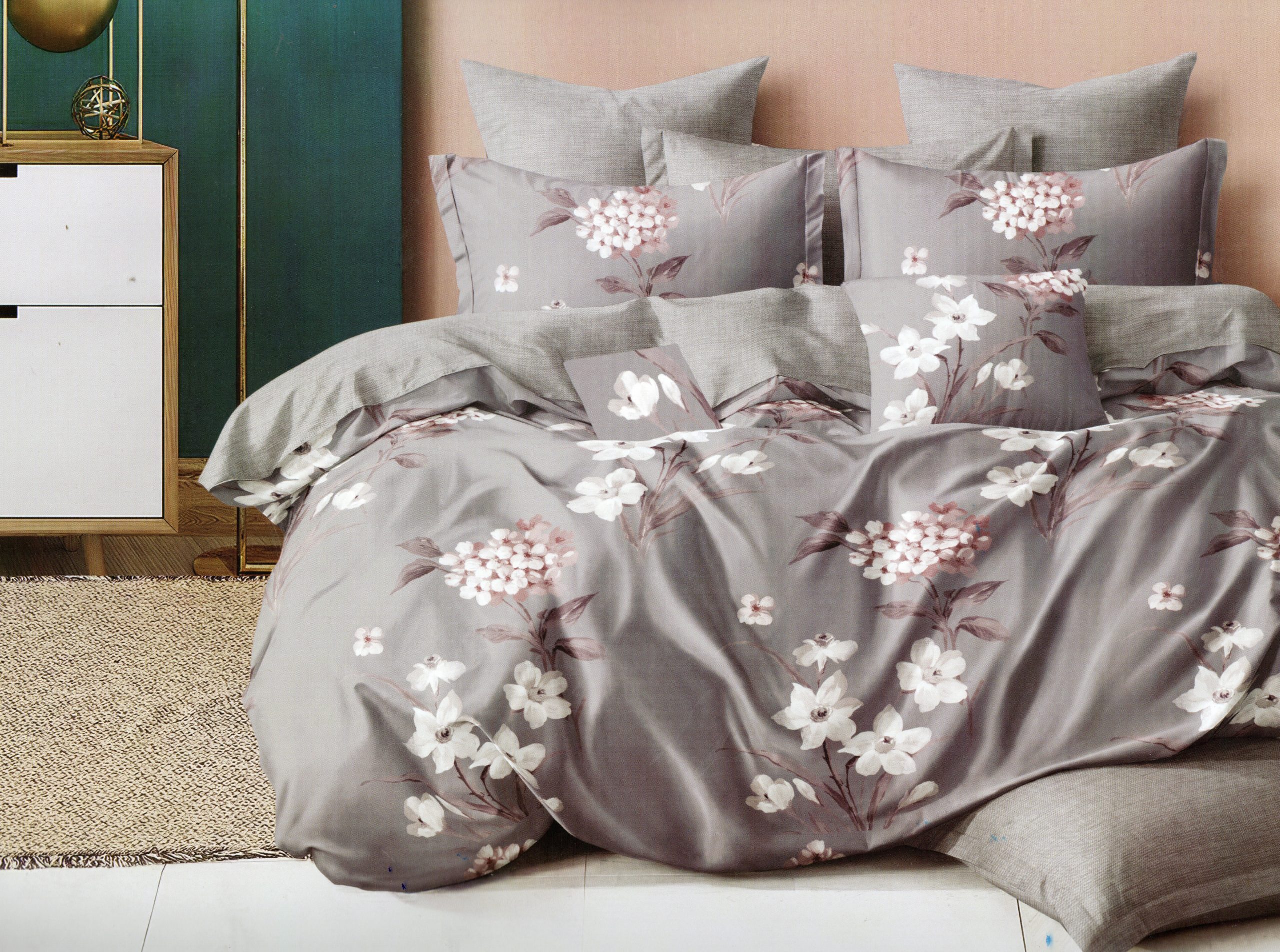 Vienpusējs dizains: Segas pārvalkam, spilvendrānām un palagam ir viens raksts. Tas izskatās skaisti un saskaņoti, nodrošinot patīkamu, vienotu guļamistabas stilu. Pilnu iespaidu par krāsu un rakstu var gūt, skatoties uz pievienotajām bildēm.