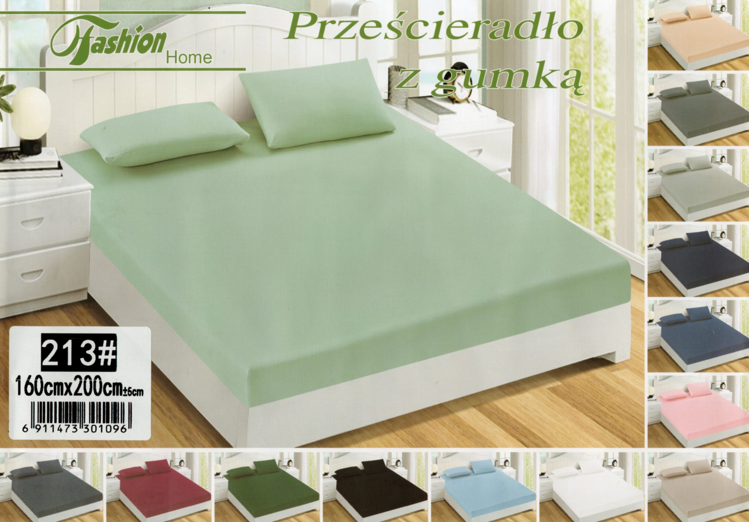 160×200 Palags ar gumiju by Fashion Home Textiles / 100% kokvilna satīns (Gaiši zaļš)