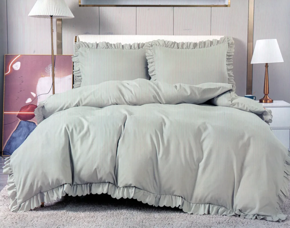 200×220 LUKS Klases Gultas veļas komplekts ar mežģīnēm by Cotton World/ 100% KOKVILNA SATĪNS (gaiši pelēks)