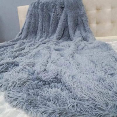 220×240 Pūkains gultas pārklājs-pleds (zils)
