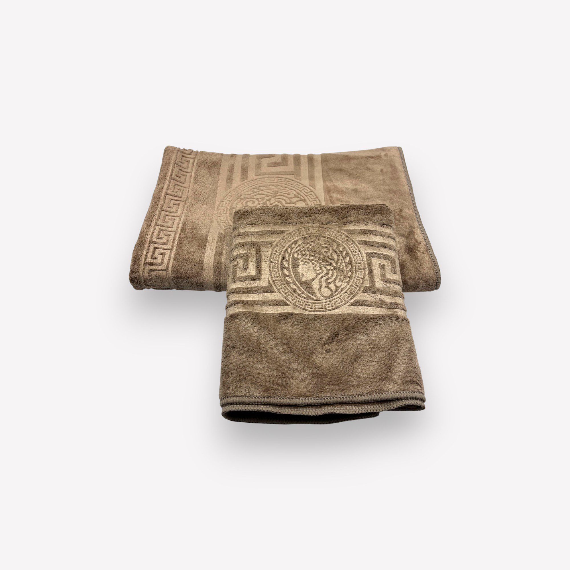 Fantastiskas kvalitātes mikrofibras vannas dvieļis. Lieliska kvalitāte, laba mitruma uzsūkšana, izsmalciāts raksts ar versace simbolu, lai Jūsu vannas izstaba izskatītos īpaši eleganta, Šīs elegants dvielis derēs arī kā lieliskā dāvana!
